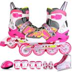 インラインスケート ローラースケート インラインシューズ 子供用 大人用 ジュニア キッズ 女の子 男の子 初心者向け サイズ調整可能 全発光ウィール 通気 安全
