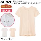 グンゼ 愛情らくらく ワンタッチ 3分袖シャツ 綿100% マジックテープ M〜LL 介護 肌着 前開き レディース 半袖 女性用 下着 GUNZE インナー 大きいサイズ LL