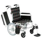 日本製 アルミ製ノーパンク車椅子 介助式 ネイビーチェック 折り畳み 折りたたみ スリム コンパクト 代引不可