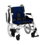 介助式 肘跳ね上げ式 座面40cm 多機能車いす エアータイヤ ベッドなどへの横移動スムーズ マキテック KS70-4043NC ネイビーチェック色
