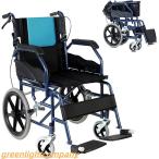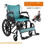 車椅子 折り畳み式 アルミ製 介助・自走 兼用 簡易 コンパクト 介助ブレーキ付 収納ポケット付き MDM( グリーン)