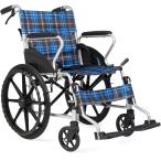 車椅子 自走式 介助式 兼用 アルミ製 軽量 折り畳み コンパクト 車イス 背折れタイプ 折りたたみ式 簡易 MDM(青&赤チェック柄)