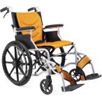 車椅子 折り畳み式 アルミ製 介助・自走 兼用 簡易 コンパクト 介助ブレーキ付 収納ポケット付き MDM(オレンジ)