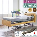 電動ベッド 介護用ベッド 昇降式 3モーター MFB-1603UF キャスターなし 非課税 介護 棚付き 手すり 国産ウレタンマットレス LEDライト コンセント付き 高さ調整