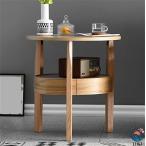 丸型コーヒーテーブル、ラウンドオークウッドコーヒーテーブル 隠し引き出し付き 2段 小さなソリッドウッドサークルコーヒーテーブル 素朴なラウンドサイドテー
