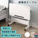 サイドテーブル 昇降式テーブル 無段階 高さ調節 レバー式 60×40 在宅 介護 折りたたみテーブル 組立不要 キャスター付き 一人暮らし 便利 おしゃれ