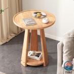 サイドテーブル ソファーテーブル 丸 ナイトテーブル 天然木 THKJ ラウンドテーブル 無垢材 棚板付き 組立簡単 小さい おしゃ おしゃれ 空間になじむ