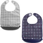 介護エプロン 食事 エプロン かわいい おしゃれ 食事用エプロン (幅80×丈90cm) MR-3012 萬楽 メール便 │ チェック 撥水加工 シニア 高齢者 食事介助 こぼす