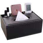ティッシュケース ティッシュボックス 多機能 リモコン 収納 リモコンラック 小物入れ 卓上 仕切り付き (ブラック)