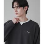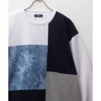 tシャツ 「NAVY」裏毛ブリーチ切替えクルーネックトレーナー メンズ