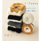 4足セット フリース ソックス ルームソックス もこもこ 靴下 冬 あったか メンズ レディース ふわふわ アニマル 可愛い ボーダー柄 裏起毛 暖かい