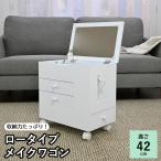 ほぼ完成品 メイクワゴン メイクボックス ドレッサー 鏡台 ロータイプ スリム コンパクト キャスター付き 引き出し付き 収納 大型ミラー