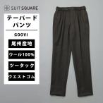 【スーツスクエア】メンズ GOOVI タックテーパードパンツ ウールシャンブレー キャバリーツイル ドローコード グレー系