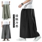 袴パンツ メンズ 接触冷感 涼しい ガウチョパンツ アイスシルク パンツ ビッグシルエット ワイドパンツ 大きいサイズ メンズ 春夏 サルエル 冷感