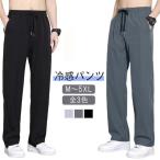 接触冷感 パンツ ロングパンツ 落ち感 アイスシルクパンツ パンツ 薄手 ストレートパンツ ワイドパンツ スラックス ウエストゴム 速乾 スポーツ 夏