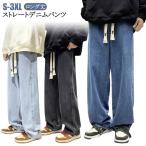 ロング丈 ワイドパンツ メンズ おしゃれ レディース Gパン ストレートジーンズ 大きいサイズ ストレートパンツ ジーパン リラックス ロングパンツ