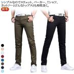 パンツ 無地 スリムフィット ストレッチ スキニー カラーパンツ メンズ(カーキ) jb42142
