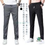 アイスシルク 接触冷感 ロングパンツ 2枚 イージーパンツ 冷感パンツ メンズ 薄手 ゴルフパンツ ウエストゴム ストレッチ 伸縮 美脚 長ズボン