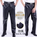 レザーパンツ メンズ パンツ バイクパンツ ワイドパンツ PU レザー ウエストゴム ライダースパンツ 革パン フェイクレザー ボトムス 防風 作業着
