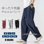 リネンパンツ サルエルパンツ ワイドパンツ 綿麻 メンズ ボトムス アラジンパンツ 夏物 涼しい 薄手 吸汗速乾 カジュアル 大きいサイズ ゆったり 美脚 脚長