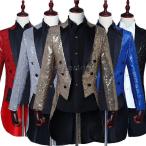キラキラタキシード メンズ 燕尾服 スーツ ジャケット スパンコール タキシード スーツ 演出服 結婚式 礼服 コンサート 宴会 パーティー 芸人 お