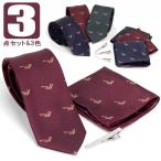 ネクタイ ポケットチーフ ネクタイピン 3点セット メンズ シルク タイ チーフ タイバー キツネ 狐 フォックス 動物 パターン 3色展開 ネイビー グリーン ワイン