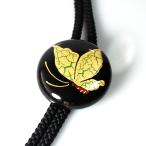 伊万里焼有田焼で知られる陶芸磁器ループタイ。黒釉金彩貫入蝶。