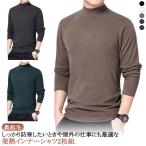 2枚組 あったかインナー メンズ ハイネック カットソー インナーシャツ 防寒インナー 無地 発熱 ストレッチ 長袖 ボトルネック 肌着 冷え防止