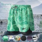 水着 メンズ 2層 膝丈 植物柄 サーフパンツ 海パン ボードショーツ スイムウェア ラッシュガード 男性用 ミズギ 水陸両用 プール 海辺 フィットネス