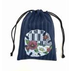 [江戸てん訳あり 信玄袋 合切袋 しじら織 捺染柄入り 綿100% 巾着 御朱印帳袋 椿 青ストライプ