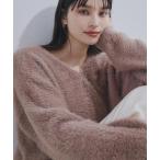 ニット セーター 甘すぎないフェミニン感。サイドリボン使いフェザーヤーンシャギー配色ニット レディース