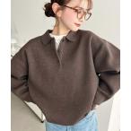 ニット セーター ウォッシャブルスウェットライクポロニットプルオーバー(自宅で洗えるウォッシャブル素材) レディース