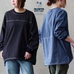 チュニック 長袖 レディース 着痩せ ストレッチ カットデニム 布帛 切り替え クルーネック 袖リブ BLUETO ブルート