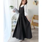 サロペット オールインワン 両V ショルダーベルト フレア スカート ゆったり 30代 40代 ベルト使い深V2WAYサロペットワンピース メール便不可
