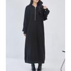 ワンピース 裏起毛 ハーフジップ フーデット パーカー ワンピース