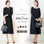 前後2way ニットワンピース レディース ロング セレモニー フォーマル パールボタン 襟付き 前開き きれいめ 卒業式 七五三 オフィス 試着チケット対象