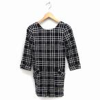 アウラアイラ AULA AILA チェック柄 オールインワン ワンピース風 ひざ丈 丸首 七分袖 アンゴラ混 0 ブラック 黒 /FT47 レディース
