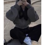 パーカー ショート丈 ジップアップパーカー 裏起毛 /韓国 空港コーデ Y2K オーバーサイズ フード 秋冬 レディース