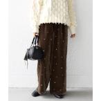 パンツ SHIPS any:「手洗い可能」ポリエステル ベロア 刺繍 ストレート ワイド パンツ レディース