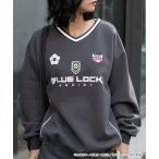 トレーナー スウェット 「ブルーロック」別注 グラフィック刺繍 ドロスト パイピングライン サッカーシャツ Vネック スウェット レディース メンズ