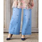 ジーンズ デニム デニムパンツ 「人気デザイン」「手洗いOK」リボン刺繍ワイドデニム レディース
