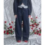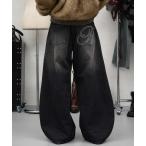 ジーンズ デニム デニムパンツ Loveハート刺繍カーブワイドデニムパンツ レディース