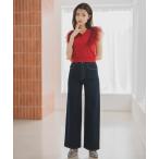 ジーンズ デニム デニムパンツ 「CANVAS+」ラインストーンデニムワイドパンツ レディース