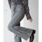 ジーンズ デニム デニムパンツ 「ウェスト調整可能/2サイズ展開」脇フリンジフレアデニムパンツ レディース