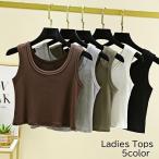タンクトップ レディース 女性 婦人 トップス ショート丈 短め インナー Uネック 袖なし ノースリーブ リブ生地 シンプル おしゃれ かわいい