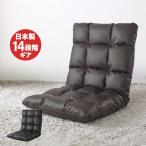 リクライニングチェア 座椅子 ダークブラウン レザー生地 ハイバック フロア ソファ へたりにくい 14段階調節 日本製ギア 北欧 コンパクト