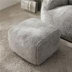 圧縮ウレタン クッションソファ オットマン 単品 もこもこファー グレー 洗える カバーリング スツール