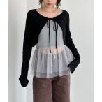 アンサンブル 「 2点セット 」フロントリボンニットベアトップ + 長袖ショートカーディガン SET / front ribbon knit ba