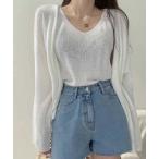 アンサンブル リボン ワンポイント アイレット ニット カーディガン