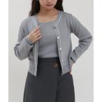 クイーンズコート アンサンブルニット カーディガン ミドル丈 カットソー 半袖 Uネック ビーズ ウール混 2 杢グレー /FF12 レディース
